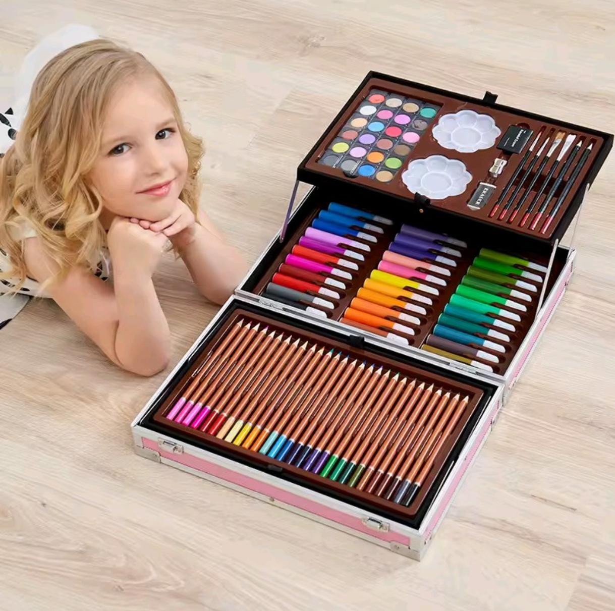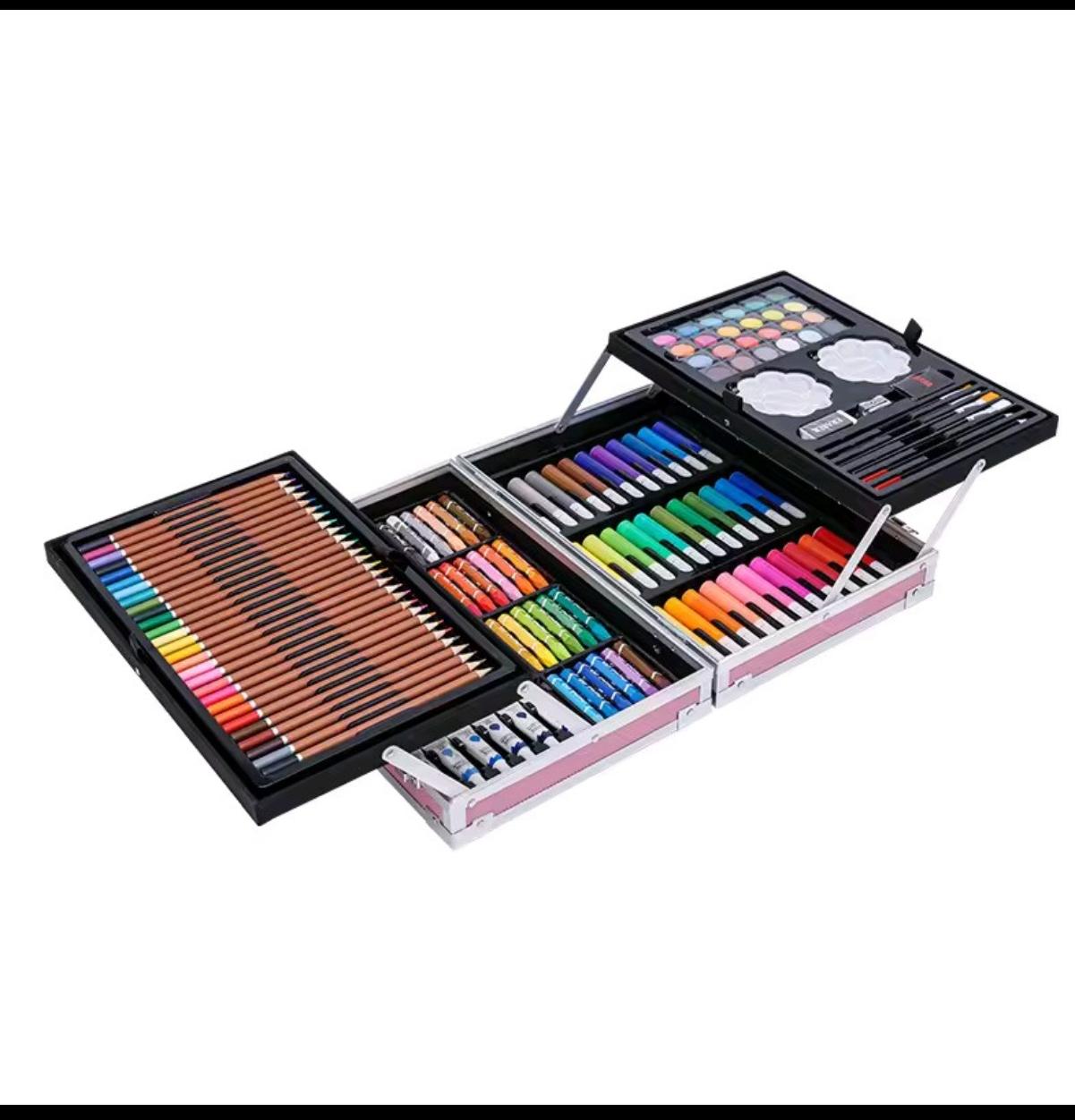 Set de Arte: Crayones, plumones, hojas A4 (caben perfectamente) y acuarelas.